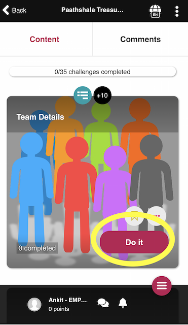 11 – First challenge is to enter the team name. This is a required step to unlock the game. Remember that the game needs minimum 4 players to start. Click in “Do it” and get started.