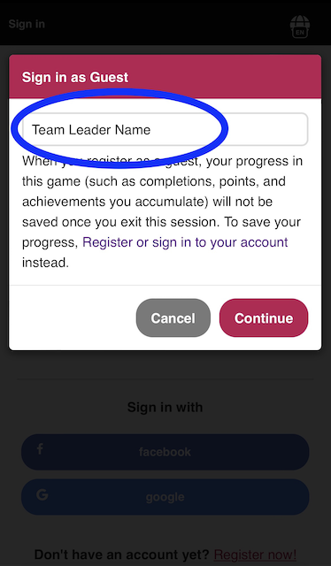3 – The team leader plays the game on his/her smartphone